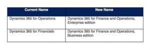 Looks like Dynamics 365 may be getting a name change in the future! The two products are set to become « Dynamics 365 for Finance and Operations » Enterprise and Business editions.