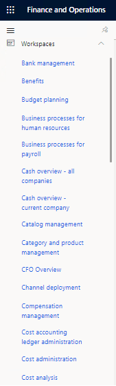 In Dynamics 365 For Finance and Operations workspaces provides an overview of specific activities, a colletcion of controls around a business scenario.