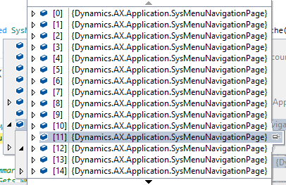 While initializing the NavePaneMenu Menu, the runtime call in parallel the MenuNavigationObjectInterface and retrieve the associated global structure of the NavPaneMenu Menu which contains all Dynamics 365 For Finance and Operations menus with their dictionary implementation, system navigation object references (In my case i have 32 Modules) and MetaModel elements corresponding to the MainMenu.