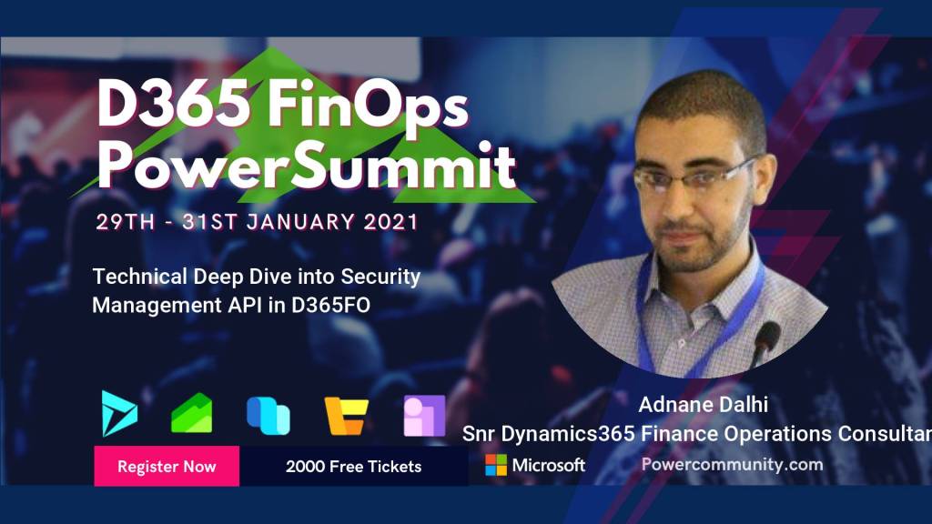 Good news to end the weekend and start the new year by new activity, Excited to share with you my next technical session at Power Community D365 Finance and Operations summit Jan 29th – 31st, during this session we will deep dive technically to understand the security management API used in Dynamics 365 For Finance and Operations. The Security Management API used in the standard as main component that help to manage, manipulate the security model, and generate security artifacts (Roles, duties, privileges) in Dynamics 365 For Finance and Operations, In previous versions of Dynamics AX, the creation of AOT objects could be done through X++ as adding tables and table fields or others. In this session we will see more in details how we can add security objects by using Metadata and the Security Management API to generate security artifacts by code. We will see how we can retrieve the global security model used in Dynamics 365 For Finance and Operations, which is considered as global repository and apply changes into it, and understand how to create security Privilege, and associate it to a Duty and then to a security Role, and finally how to publish those changes and synchonize the global security repository in Dynamics 365 For Finance and Operations.
